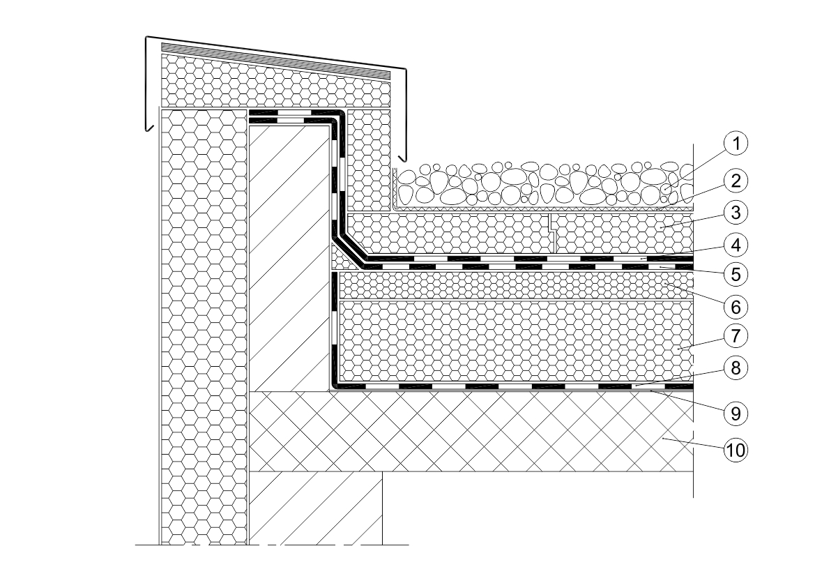 Kombinirani ravni krov s opterećenjem riječnog šljunka